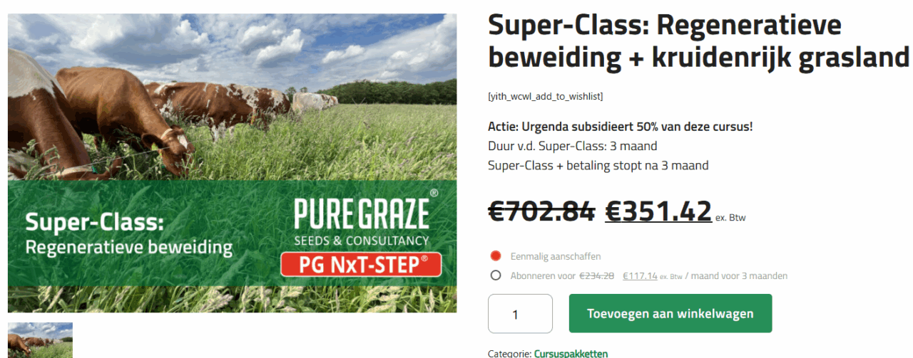 Meer weten over NxT Step van Pure Graze. Urgenda geeft behalve korting op kruidenrijk graslandmengsels, ook 50% korting op de SuperClass Regeneratieve beweiding van Pure Graze ter waarde van 350 euro: Super-Class: Regeneratieve beweiding + kruidenrijk grasland | Pure Graze.