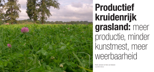 “Productief kruidenrijk grasland kan met de helft aan stikstof, evenveel of zelfs meer droge stof en stikstof leveren als intensief bemest blijvend grasland. Daarnaast blijkt het minder gevoelig voor opbrengstschommelingen tussen drogere en nattere jaren.”